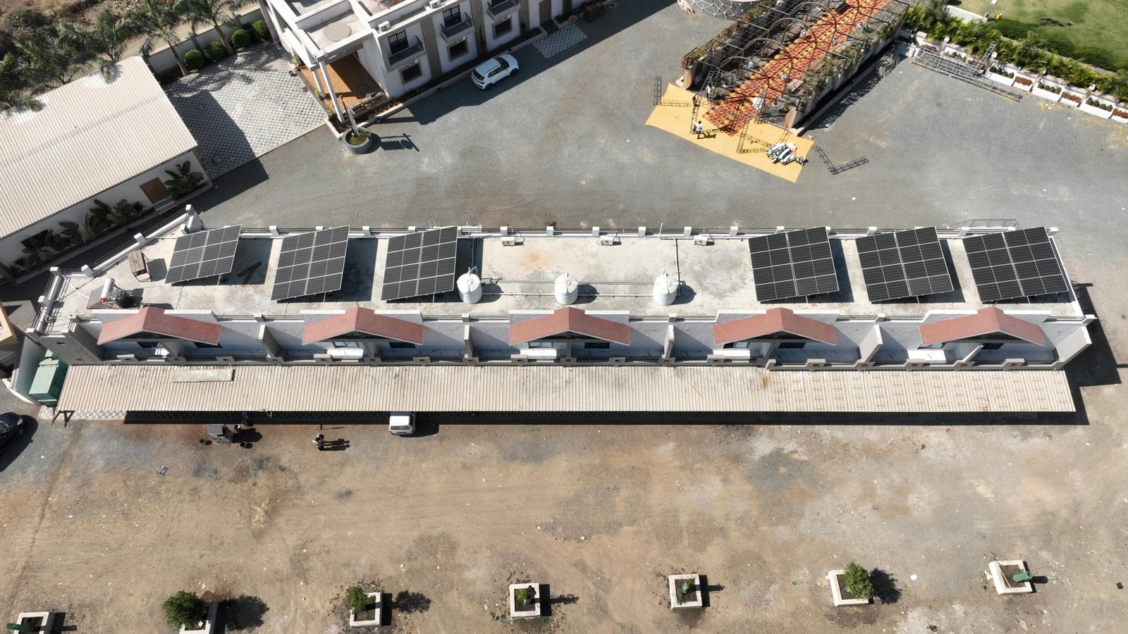 The 25 kW solar plant generates approximately 35,000–38,000 units of clean energy annually, powering event lighting systems, outdoor illumination, sound equipment, cooling appliances, and administrative offices.