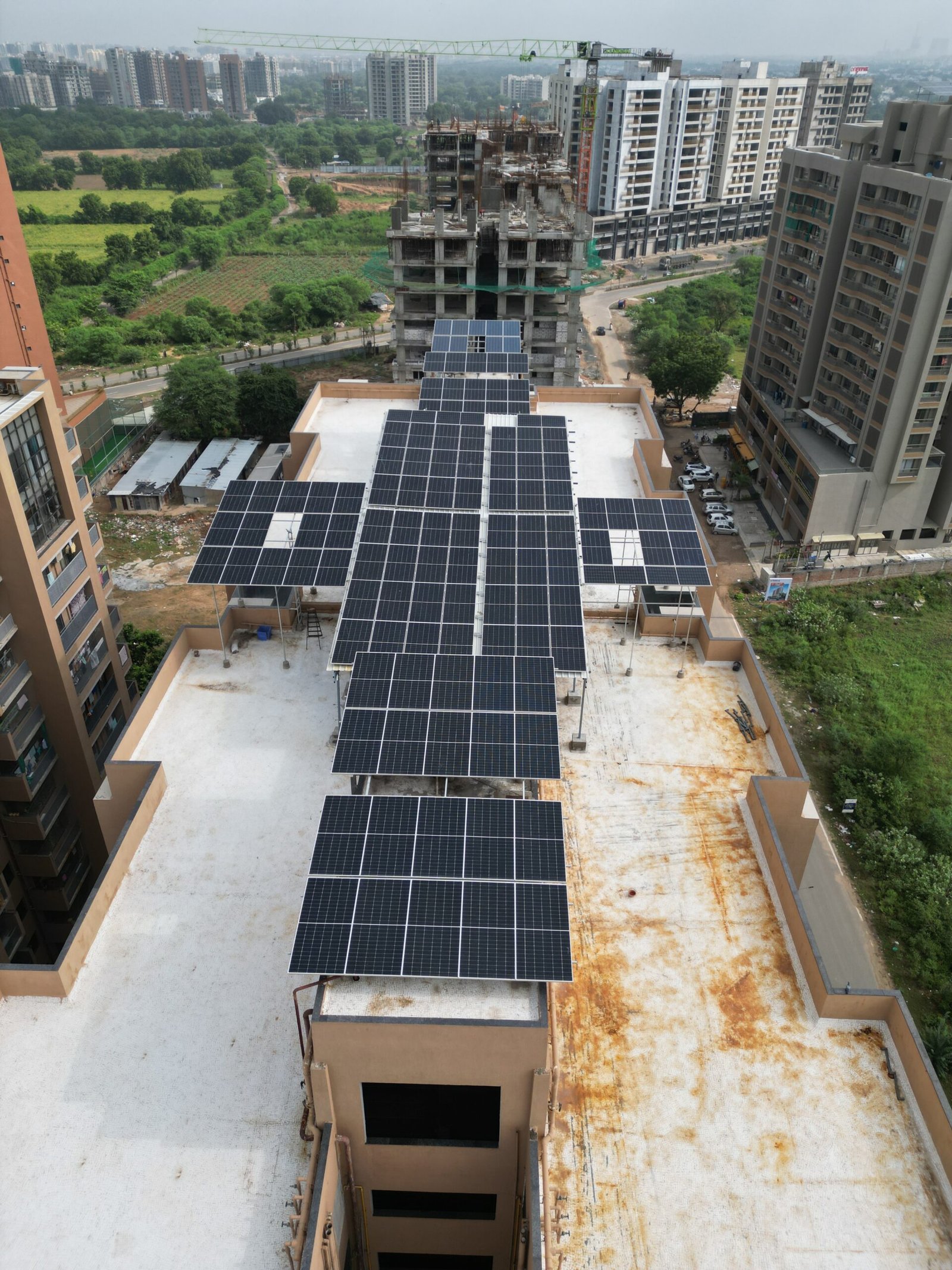 Pramukh Abode partnered with Solar Ace Energy to adopt sustainable and cost-efficient power solutions through the installation of a 72 kW commercial solar system at their residential-commercial complex in Sargasan, Gandhinagar. Commissioned in June 2025, the project was designed to significantly reduce common-area electricity expenses while supporting uninterrupted power for essential services.
